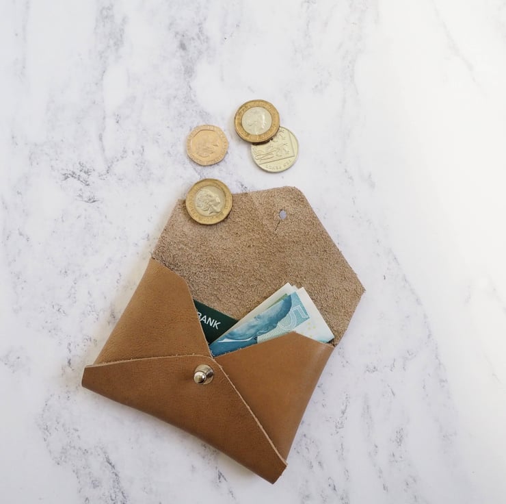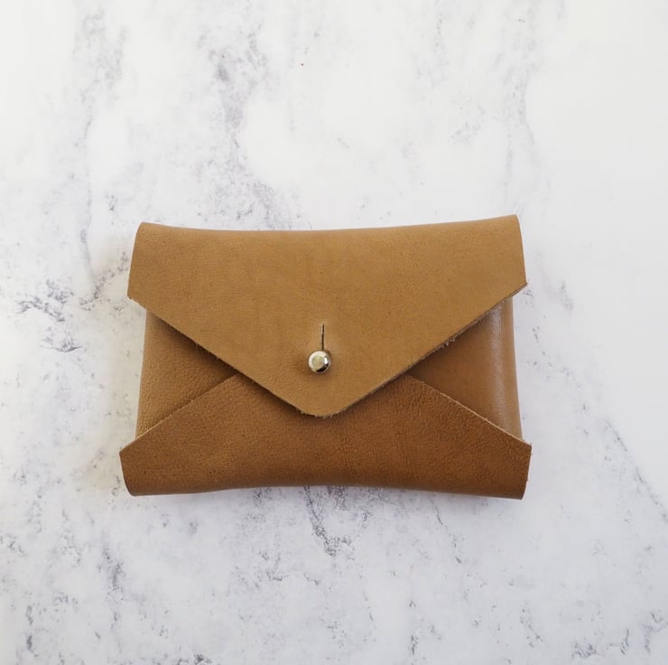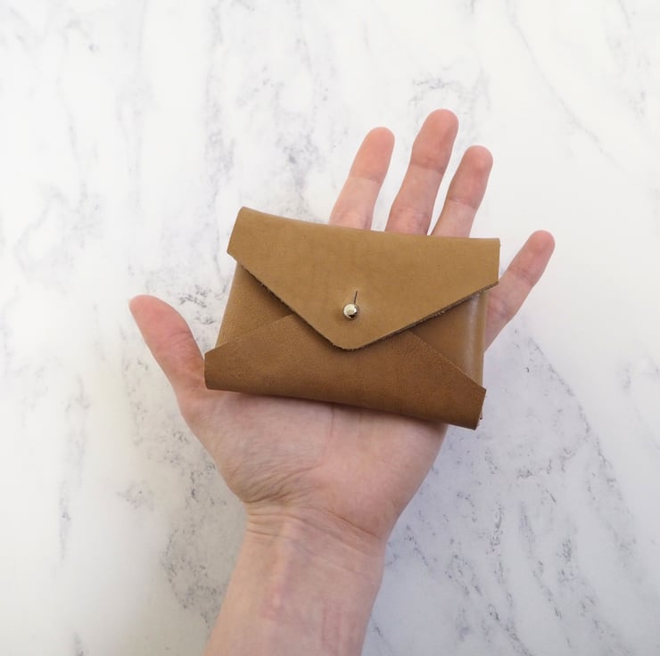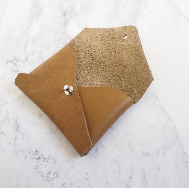 A sweet little folded purse. Perfect in size for carrying credit cards, travel cards, cash and spare change. Simply press and push the stud over the slit for secure open and closure. A minimalist design suitable for both men and women!