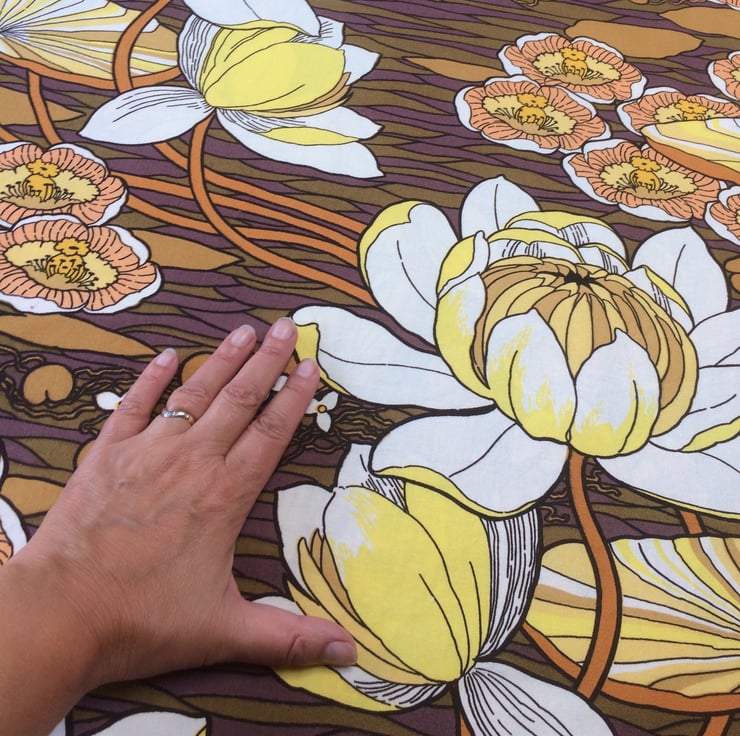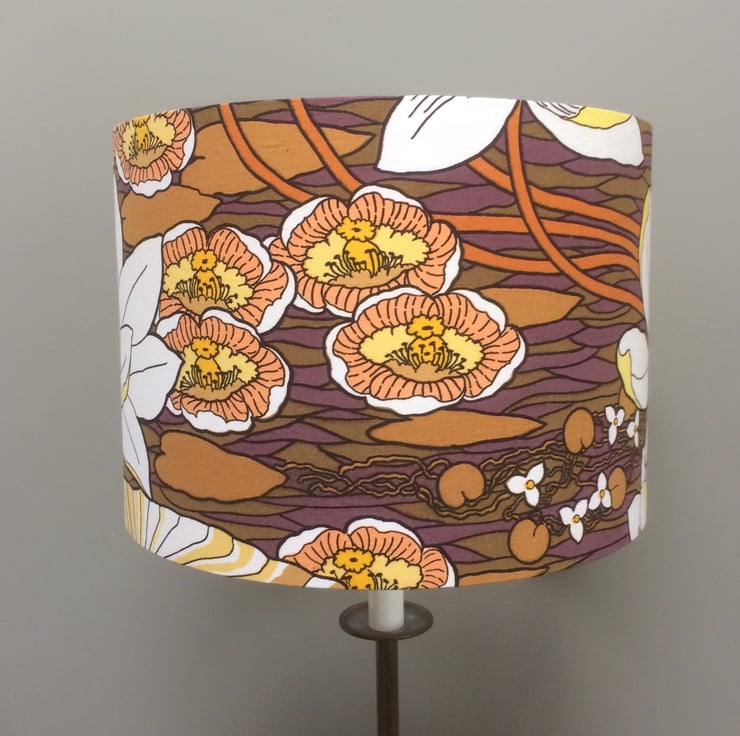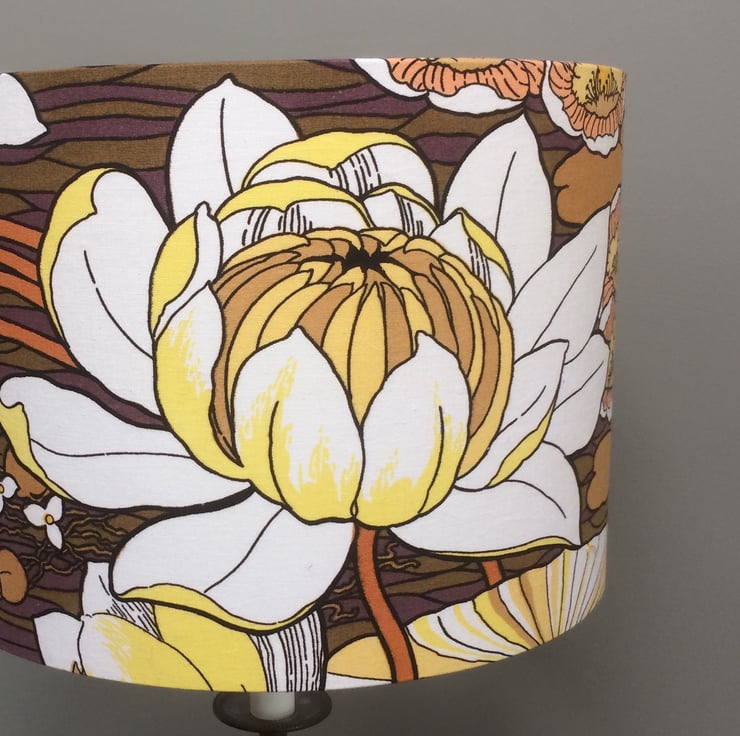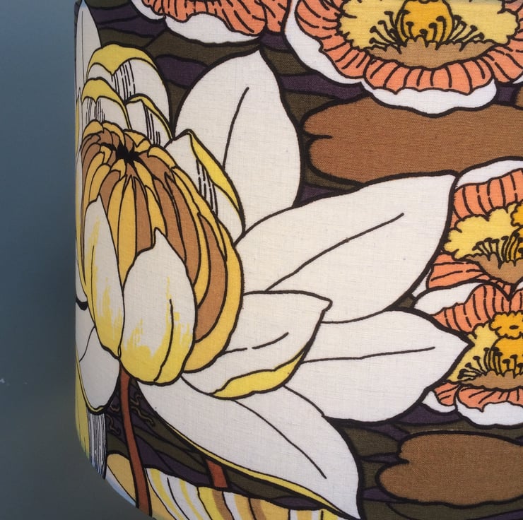 RETRO Yellow and Brown Water Lily ' ALIDA ' Sanderson Vintage fabric Lampshade