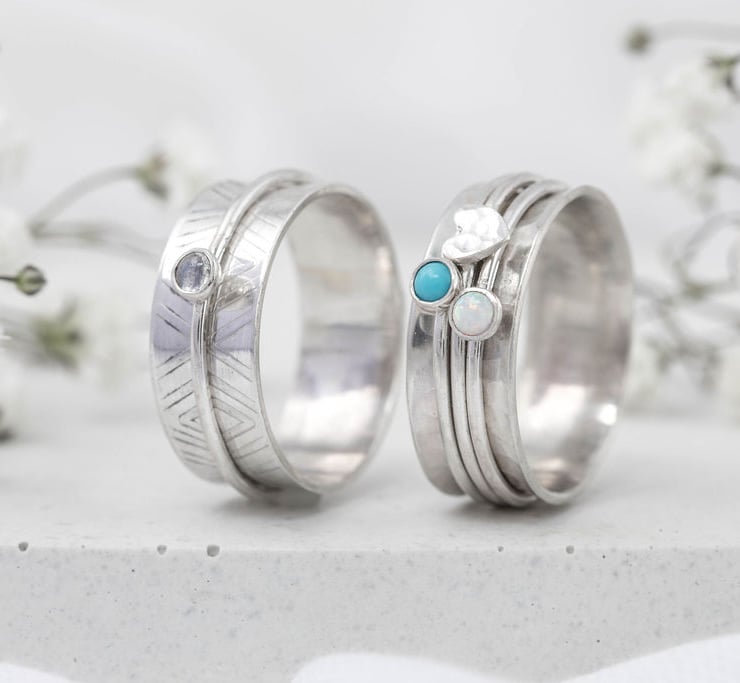 These tactile rings are sometimes called spinner rings, fidget rings, meditation rings or worry rings. They are believed to have their roots in ancient tibetan meditation techniques, and are perfect for people like me who like to fiddle with their jewellery. Who needs a fidget spinner with one of these on your finger?