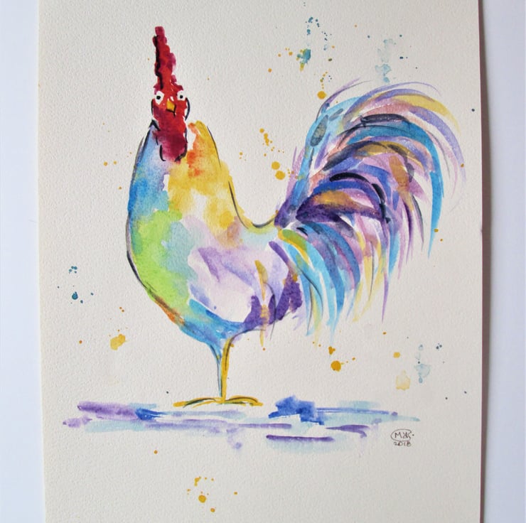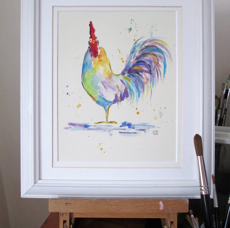 A cute and cocky colourful rooster painting.