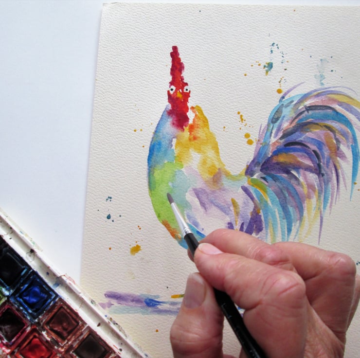 I use fine professional watercolour paints and quality 200gm2 watercolour paper.