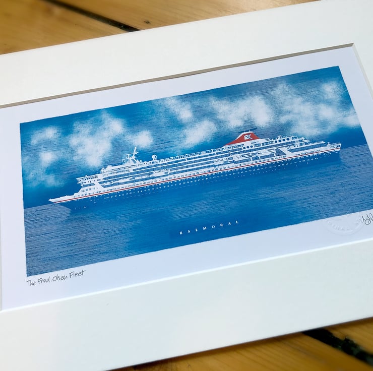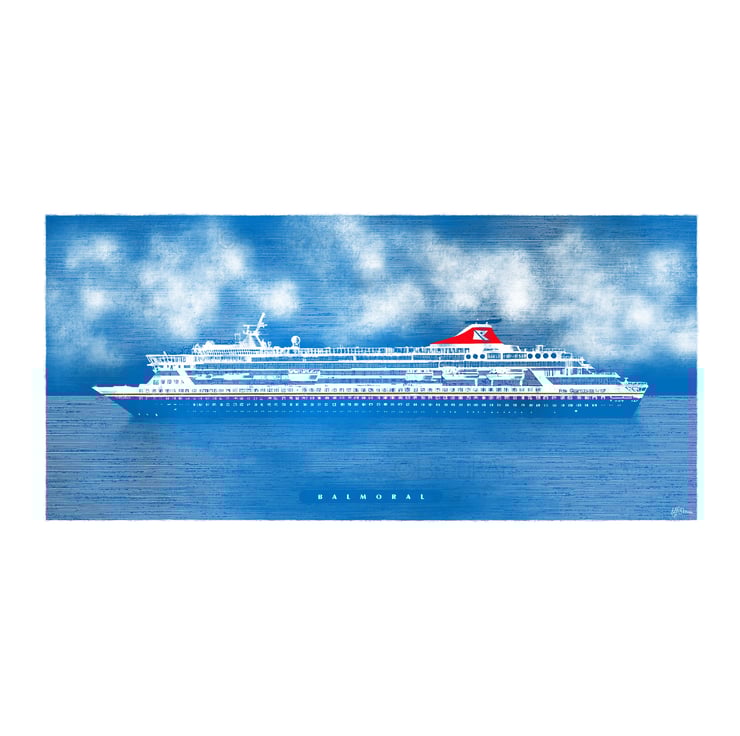 Part of my illustrated series of the four original magnificent Fred.Olsen fleet of cruise ships. Black Watch, Boudicca, Braemar and Balmoral.