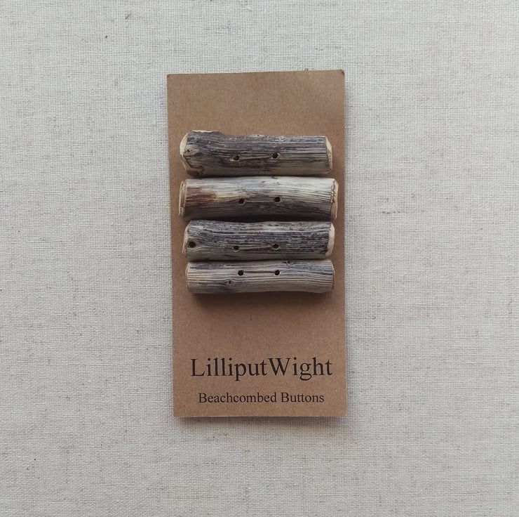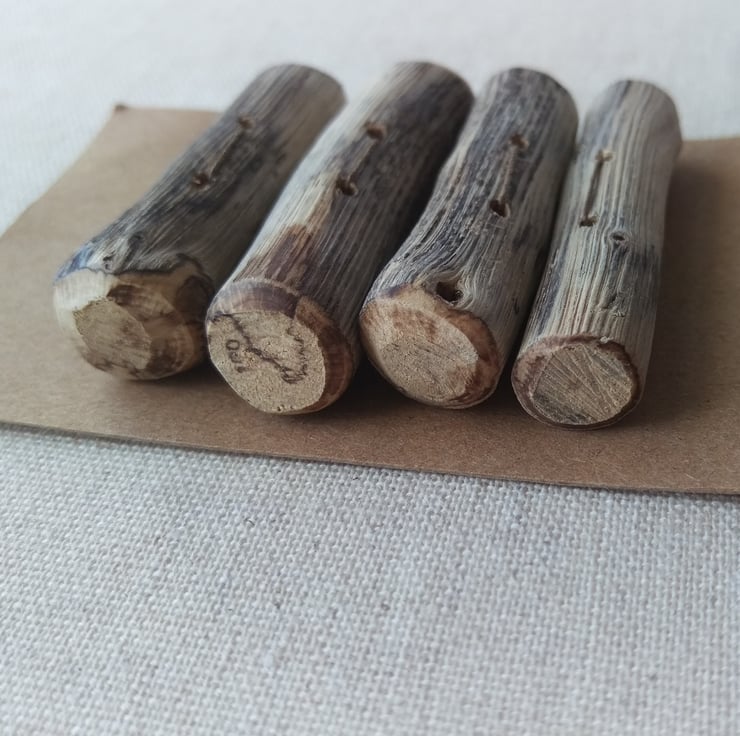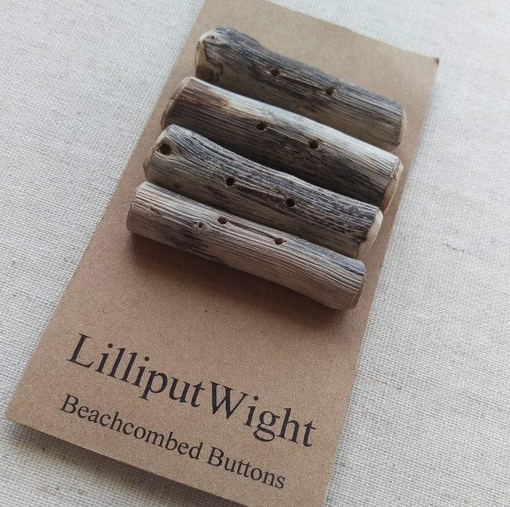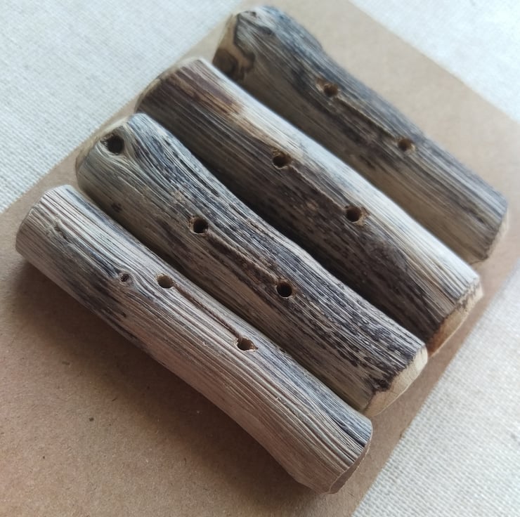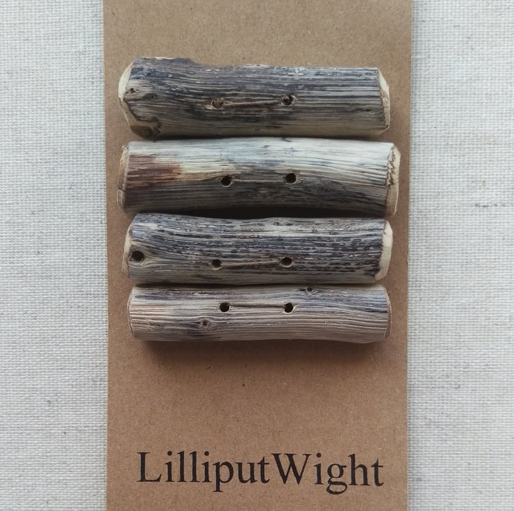 This set of 4 toggle style buttons has been handmade from driftwood collected from the beach close to my home on the Isle of Wight. These natural wood buttons would be perfect on a squashy garter stitch cardigan.