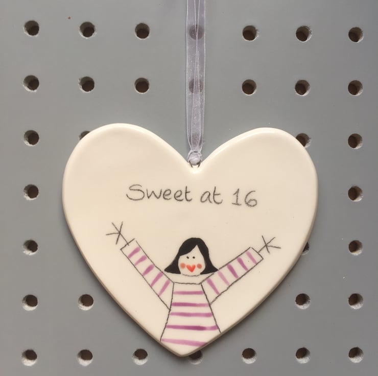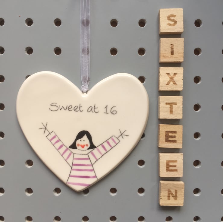 Our hand painted ceramic hearts are the perfect gift to commemorate a special loved one's 16th birthday.