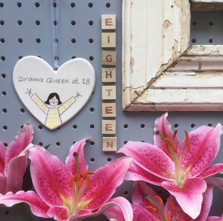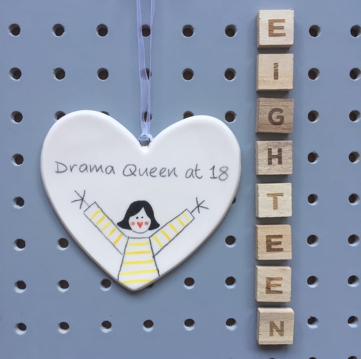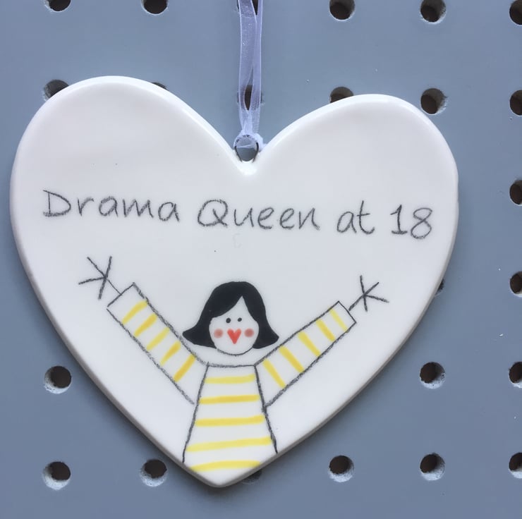 Drama Queen at 18 - Hand Painted Ceramic Heart
