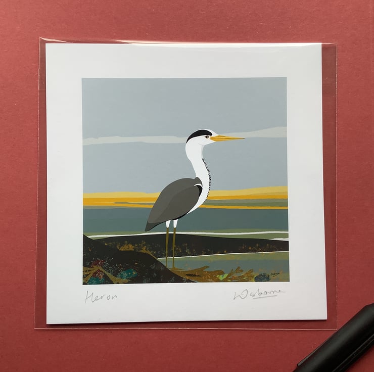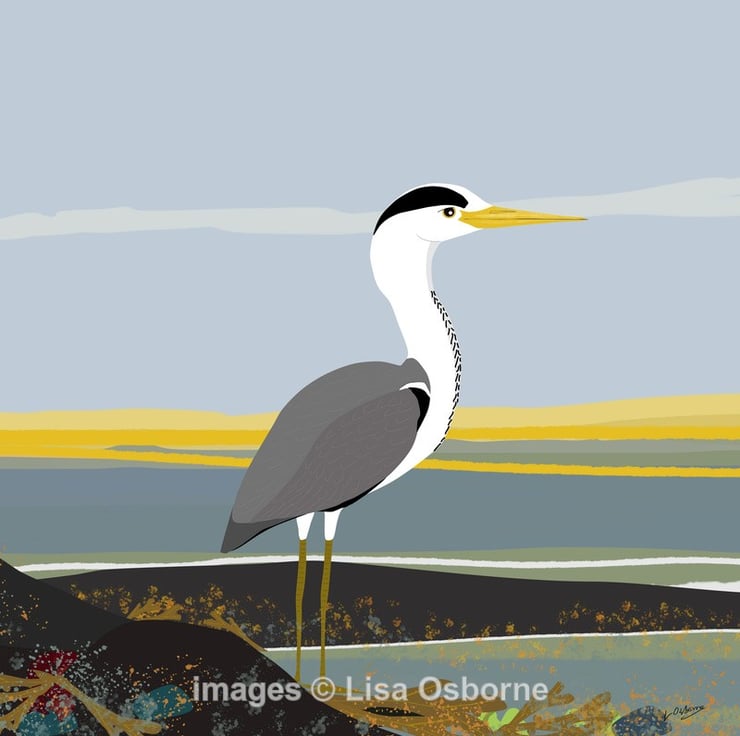 Heron - signed print from digital illustration of a heron in a rockpool.