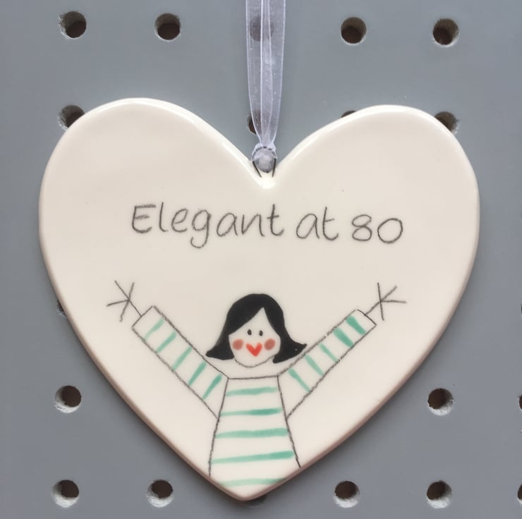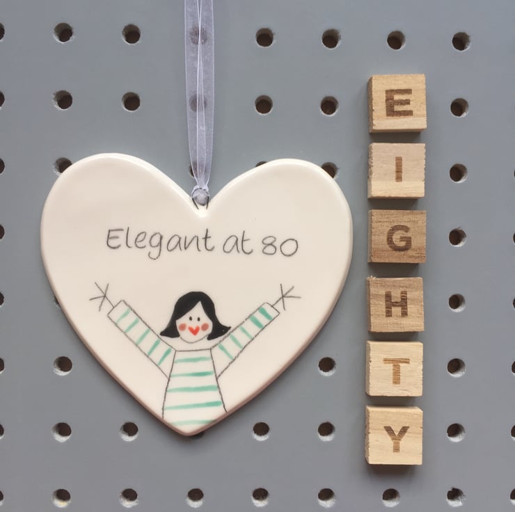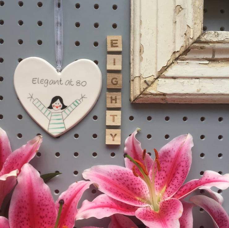 Our hand painted ceramic hearts are the perfect gift to commemorate a special loved one's 80th birthday.