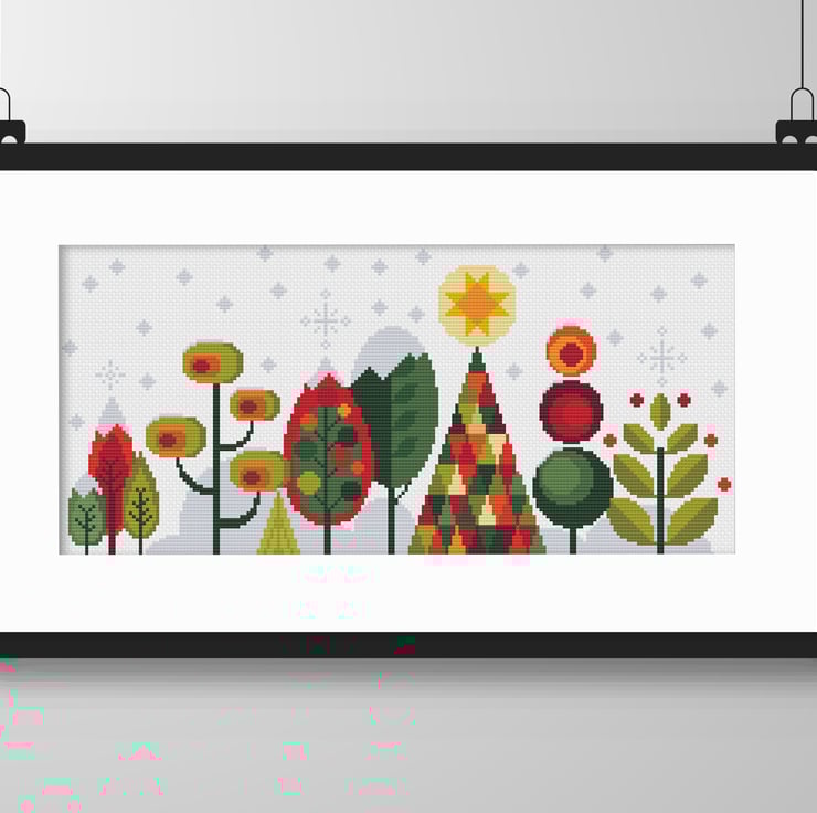 Cross Stitch Pattern 048 Grey - Scandinavian Modern Forest Trees Series - Christmas Winter Holidays - cross stitch/tapestry chart Instant PDF download by Vivsters. No delivery costs - PDF file straight to your inbox. Start stitching straight today!