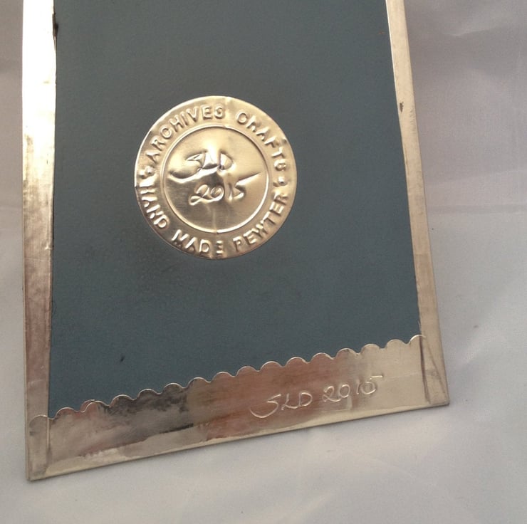 I design and make these mirrors in my home workshop in the English countryside. Each piece of glass is hand cut and then I work the pewter and fit it to the mirror, adding a steel handle at the top so that the mirror can hang from a hook or a nail or dangle from a ribbon like a sun catcher in a window.