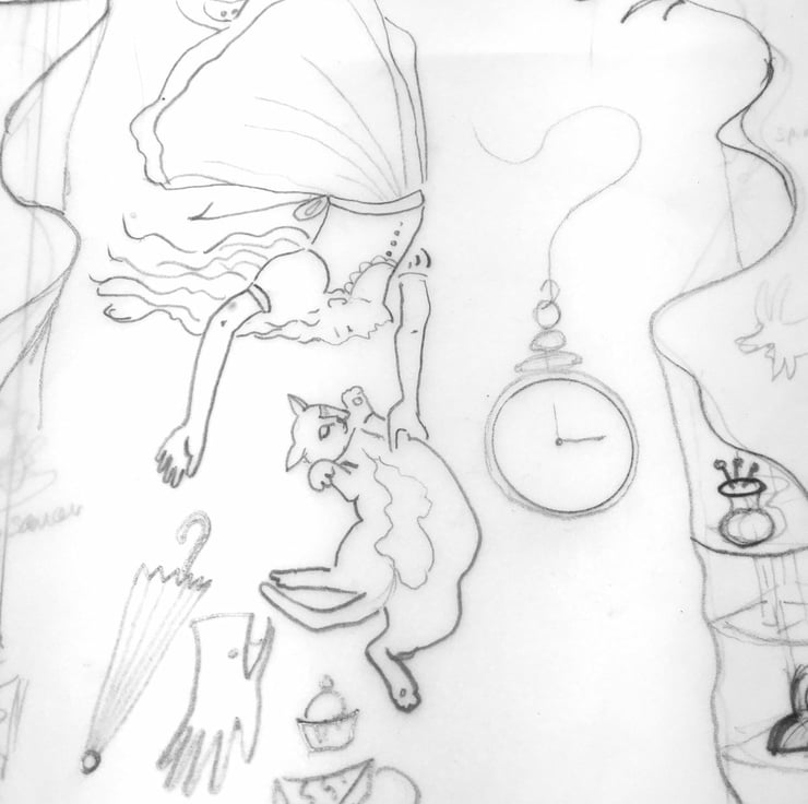 I made this lovely mirror for a custom order and love it so much! My customer wanted her cat going down the rabbit hole with her but you can choose what you want.
