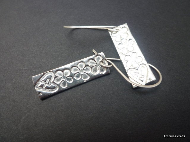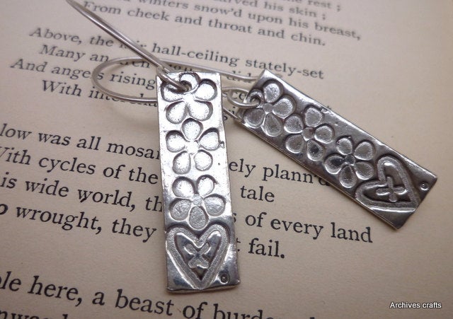 Three perfect little daisies and a heart stack up on these dangle earrings. Designed by me and entirely hand made in my own studio.