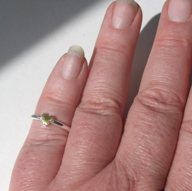 Here is my heart of gold. A tiny 24k gold and silver keum-boo heart sits atop a sterling silver band.