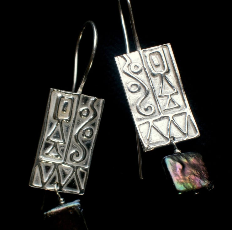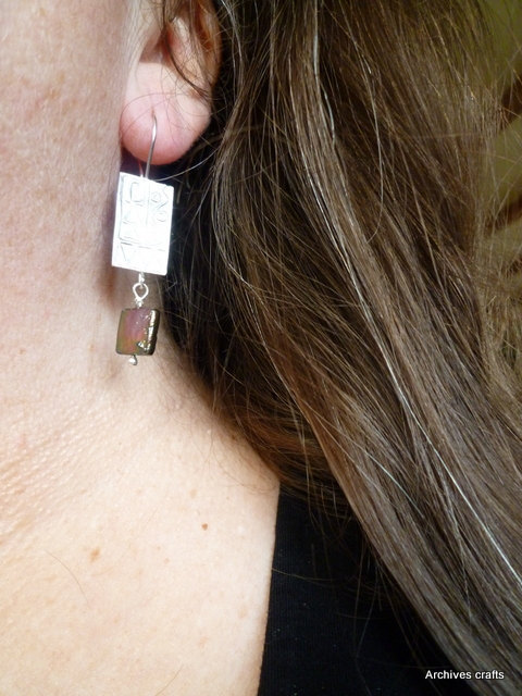 Beautiful dangle earrings inspired by Klimt, light and comfortable to wear, with a sumptuous peacock color cultured pearl.
