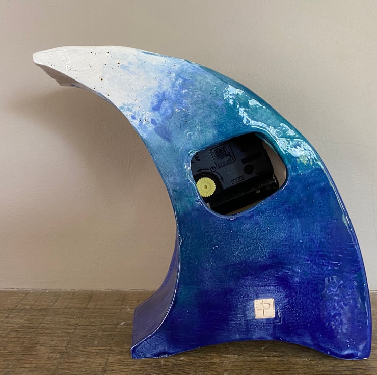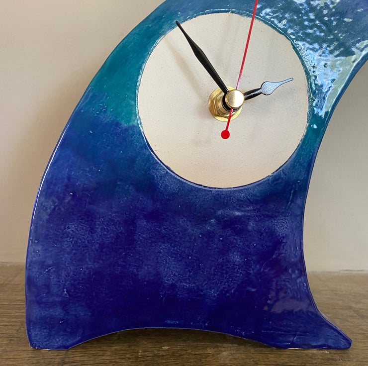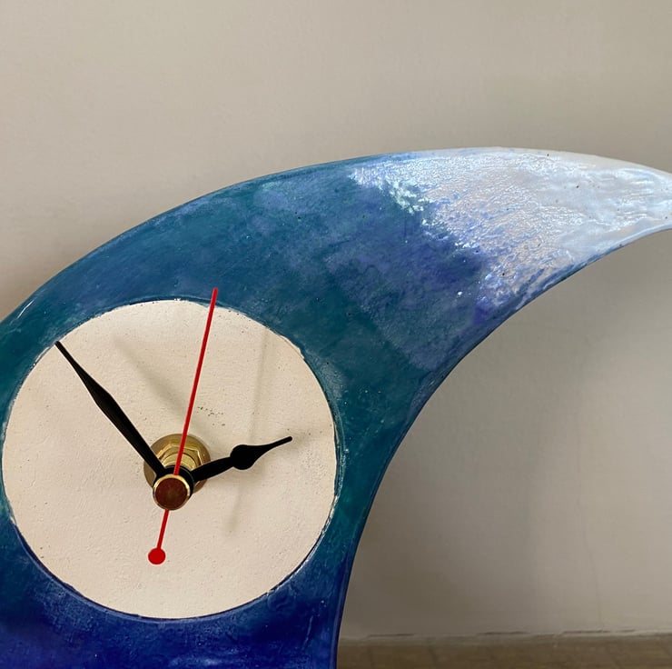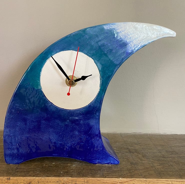 Unique Gift - Wave Mantel Clock by Peter Bowen is a Quirky Unique Handmade Wave Clock for Desk, Bedside Table or any Retro Decor. This clock design is part of my whimsical design for clocks that are uniquely made by hand by Peter Bowen in Somerset, England.