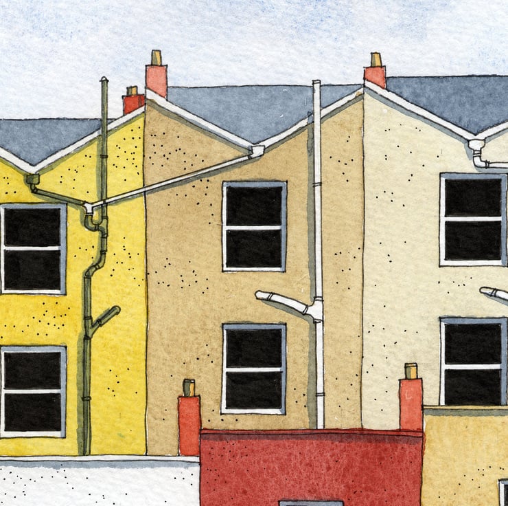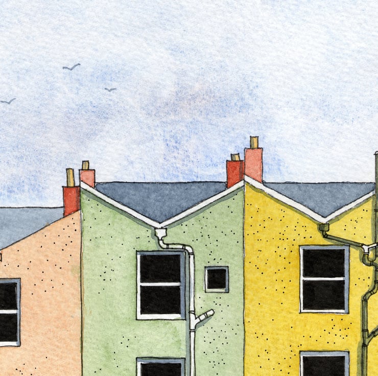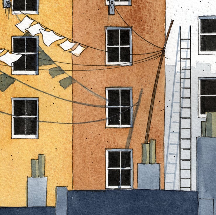 This painting is the first I have painted that is twice as large as I would normally paint, I wanted to capture the size and detail that the buildings deserved and did not forget the washing lines!