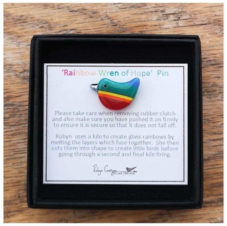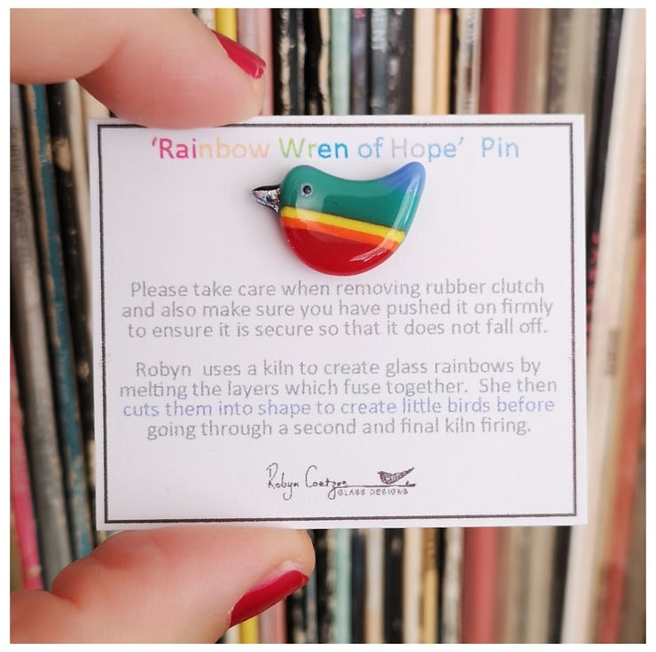 These were born in response to Covid-19. Initially it started with 'Rainbow Wren of Hope' birds to hang in your window and then it expanded into jewellery, including earrings, pendants, brooches and pins. A reminder of hope. Sending much love to you and yours.