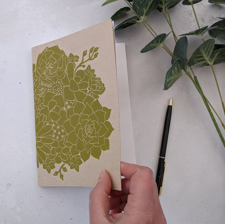 The designs are hand carved using "battleship" grey lino with specialist tools and printed with a hand wound press using Hawthorn Printmakers inks. Each book is then stitched by hand at 5 intervals, cropped and folded, to make a beautiful gift for you to give or keep.