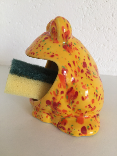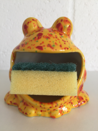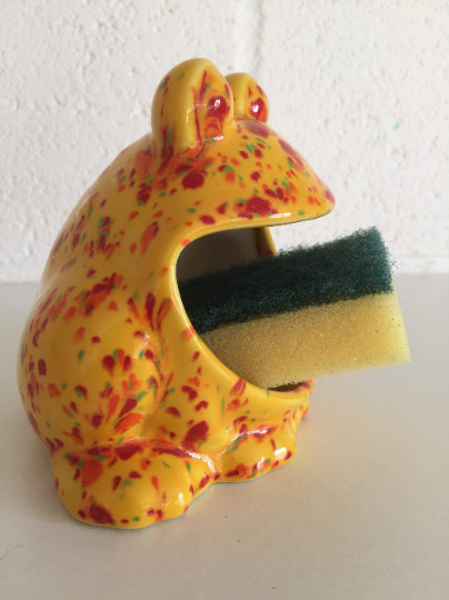 Here we have one of my ceramic frog sponge holder. This item can also be used to hold soap or various items.