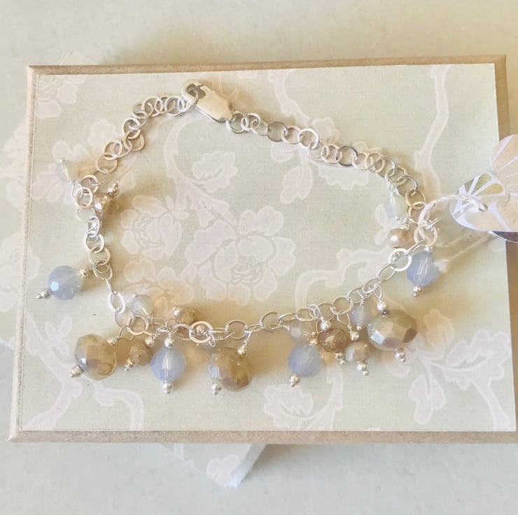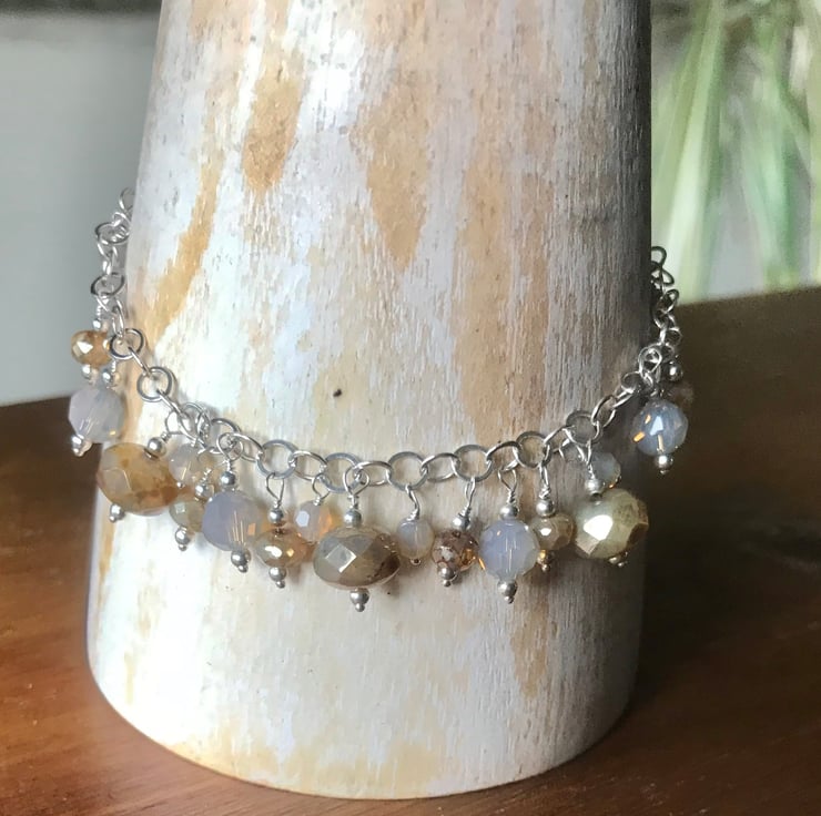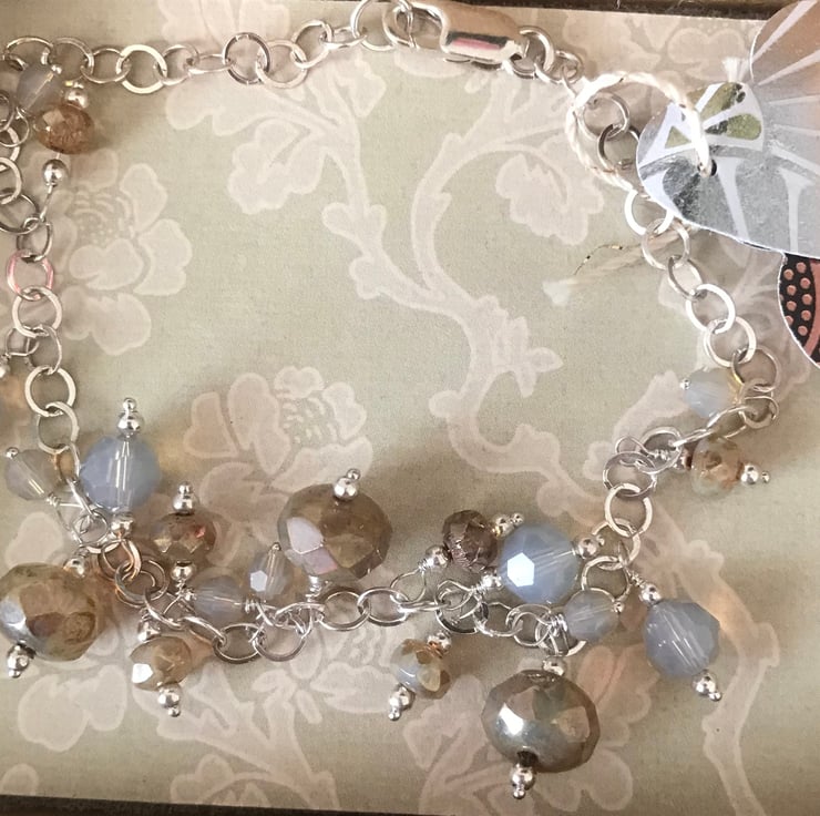 Beautiful Swarovski crystals, Czech glass beads & silver beads, individually wire wrapped onto a 925 sterling silver chain. The Swarovski crystals are a gorgeous opaque, milky grey/beige - so beautiful!