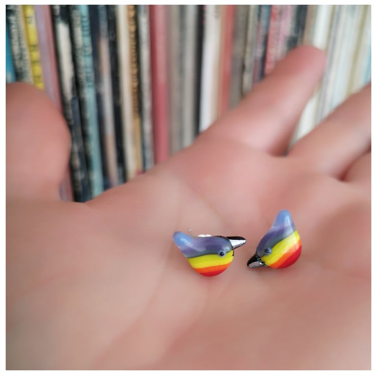 These were born in response to the awful Covid19 virus. Initially it started with 'Rainbow Wren of Hope' birds to hang in your window and then it expanded into jewellery for your ear, pendant, brooch and pins. A reminder of hope. Sending much love to you and yours.