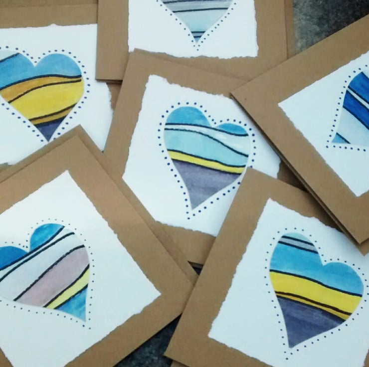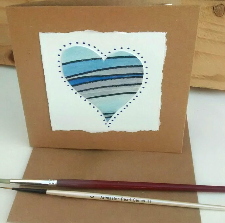 Painted heart greetings card, inspired by summer skies.