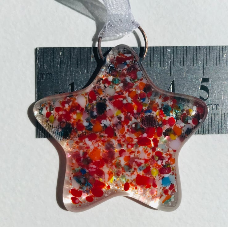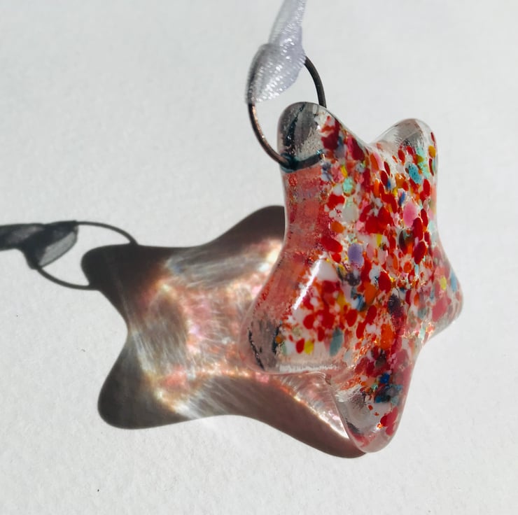 This little clear glass star is decorated with multicoloured glass frit (crushed glass) and is super cute!