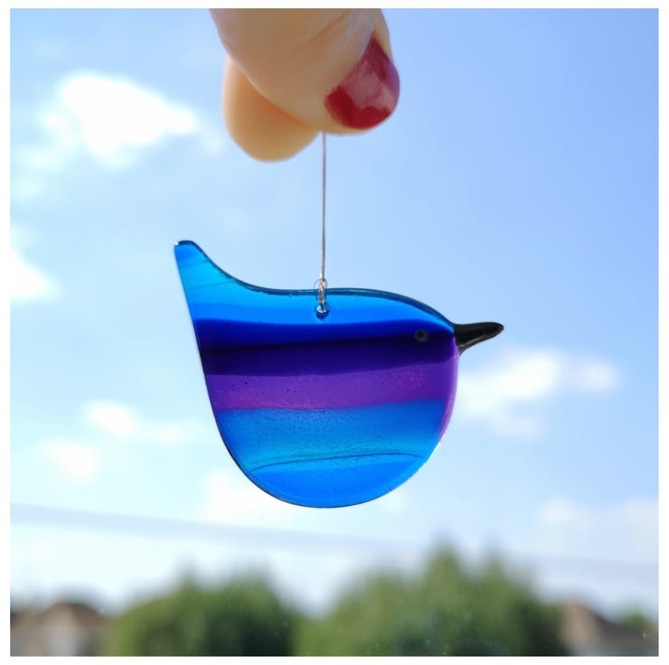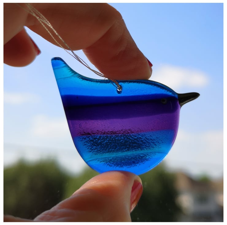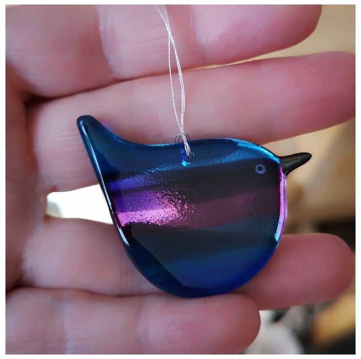 These little birds are a labour of love as I make the rainbow glass and then grind each one into shape using cold working tools and machinery, before a second and sometime third firing.
