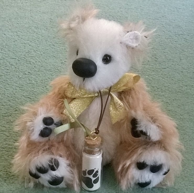 I get so much pleasure creating each bear, and seeing their unique personalities emerging. I also thought it would make an extra special gift if each bear carried a bottle containing a personalised message or wish.