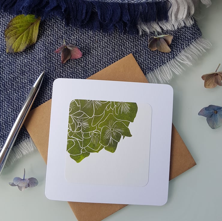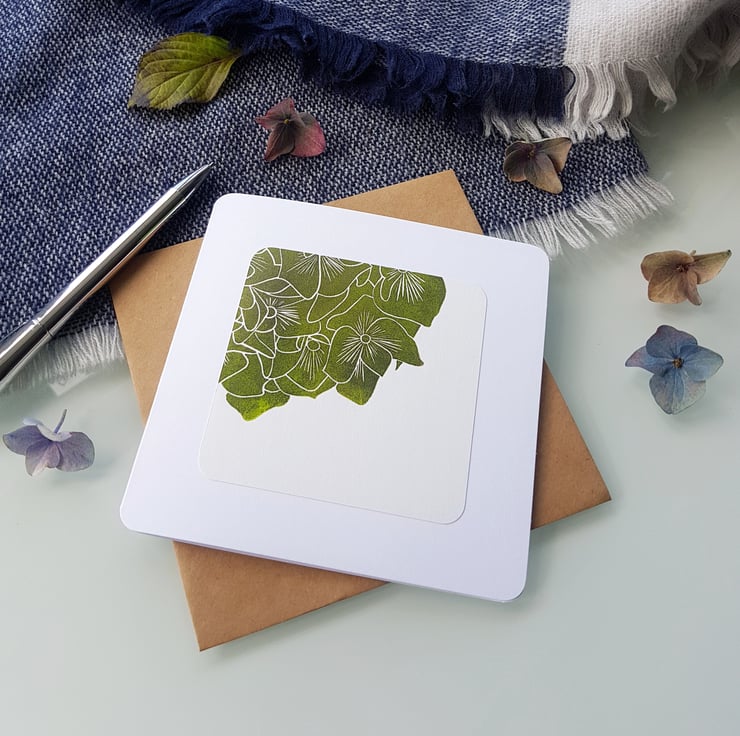 Beautifully designed and delicately carved Hydrangea linocut greetings cards. Perfect for all occasions from birthdays to weddings.