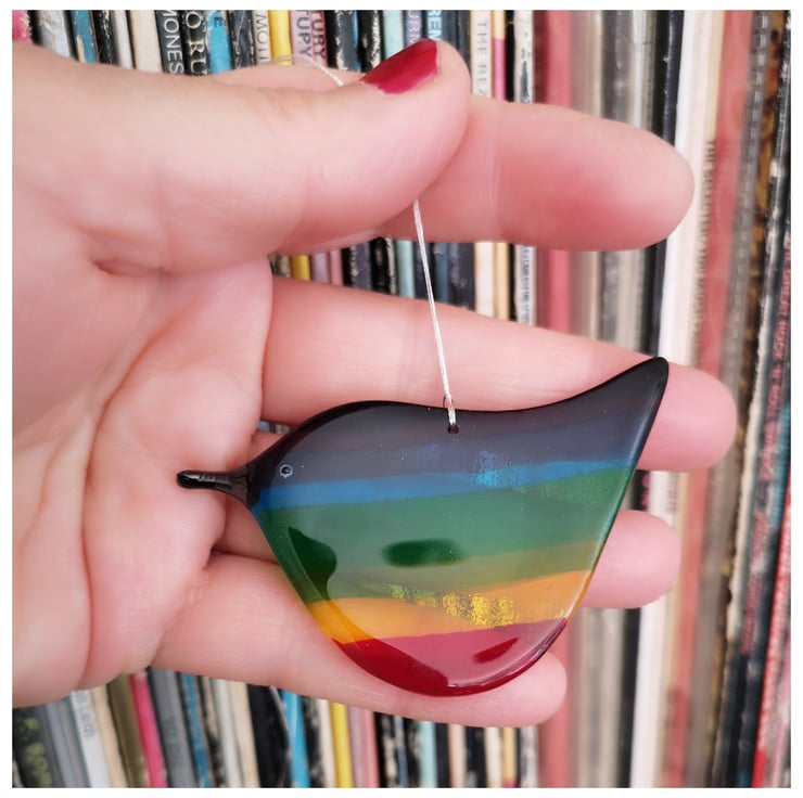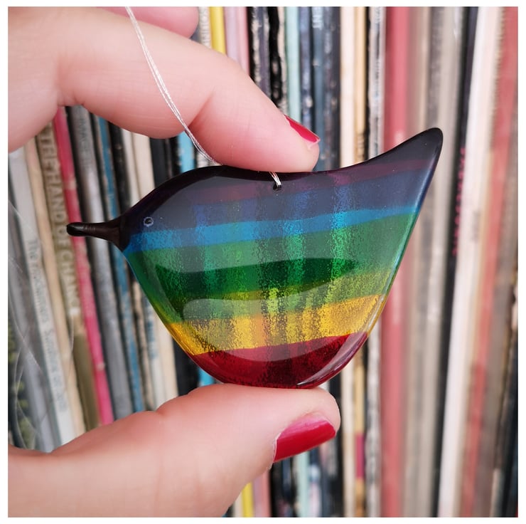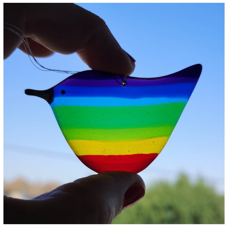 These little birds are a labour of love as I make the rainbow glass and then grind each one into shape using cold working tools and machinery, before a second and sometime third firing. See images.