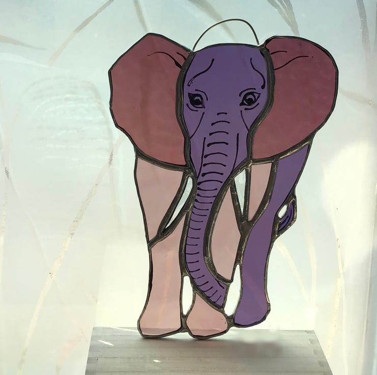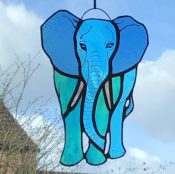 E is for elephant! This is the fifth animal in my 2020 animal alphabet. I've made various glass animals over recent years but I set myself the challenge of creating a whole alphabet of stained glass animal hangings. I've tried to capture the power and dignity of elephants in my design, which is the largest of my animal hangings so far.