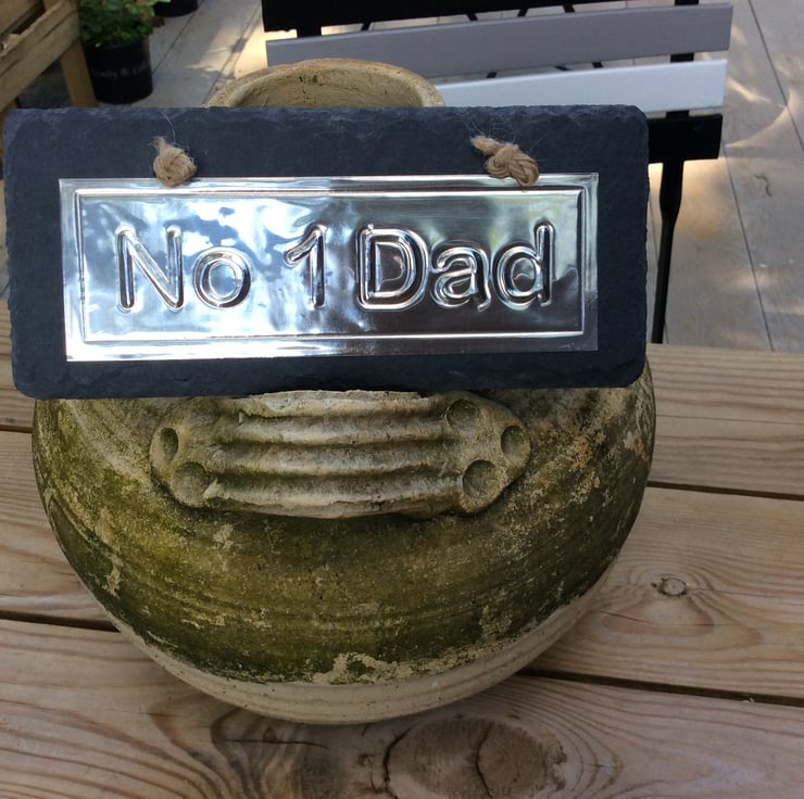 Ideal Father’s Day Gift, 18cm x 8cm, natural slate with pewter message, ‘No1 Dad’