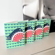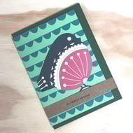 A high quality inkjet print on 260gsm linen textured white card this A6 card also comes with a beautiful steel grey envelope. The cards and envelopes are bound by a paper band making the cards and their packaging totally recyclable.