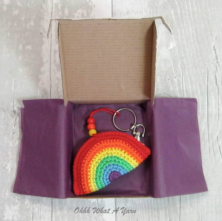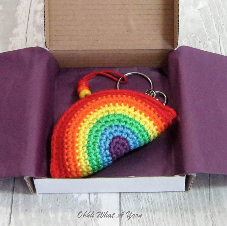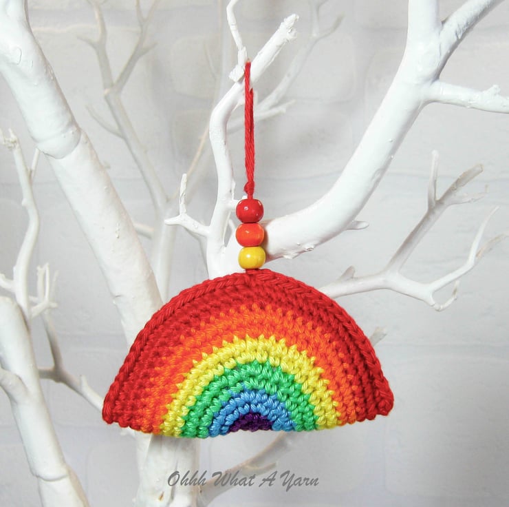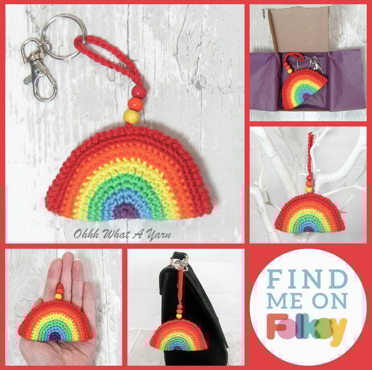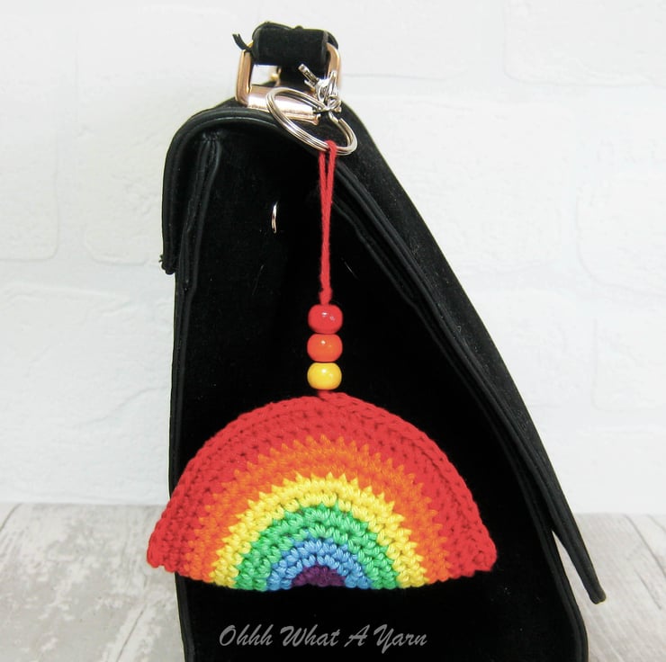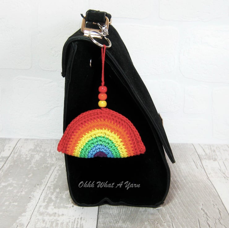 This little rainbow is another new addition to my range of crochet danglies and bag charms.