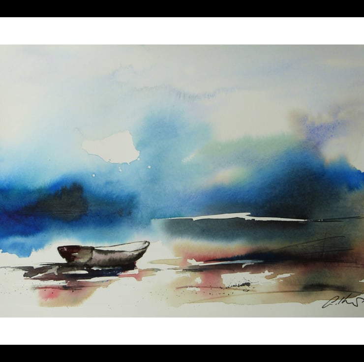 Working from my home studio on the beautiful Isle of Mull off the west coast of Scotland, my paintings are inspired by the wonderful Seascapes, Landscapes and Wildlife that surround me. This particular painting is a dreamy, semi-abstract seascape.