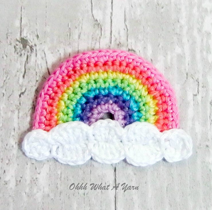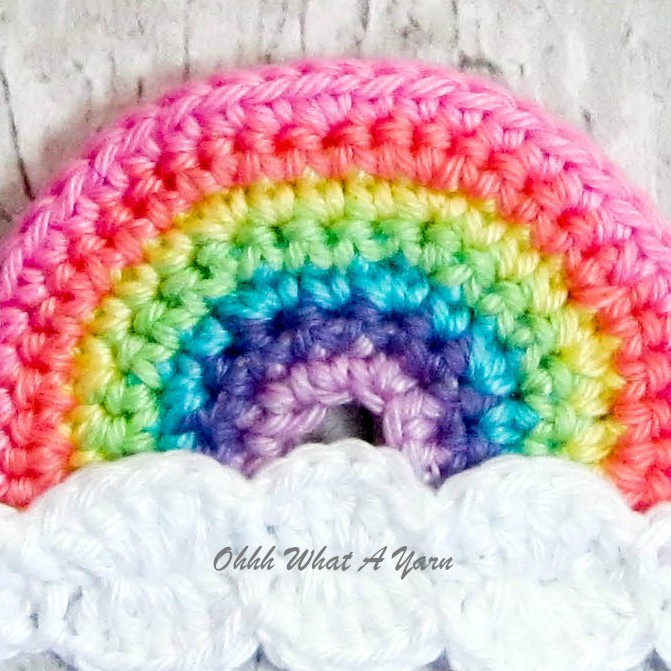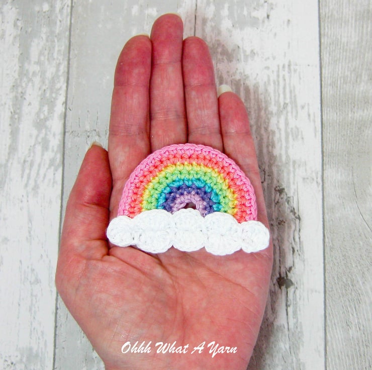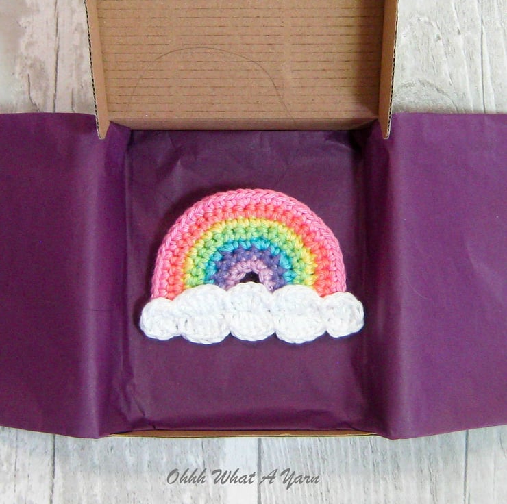 This cheerful pastel rainbow brooch has been crocheted with Scheepjes Catona mercerised cotton yarns which gives it a lovely sheen and stitch definition.