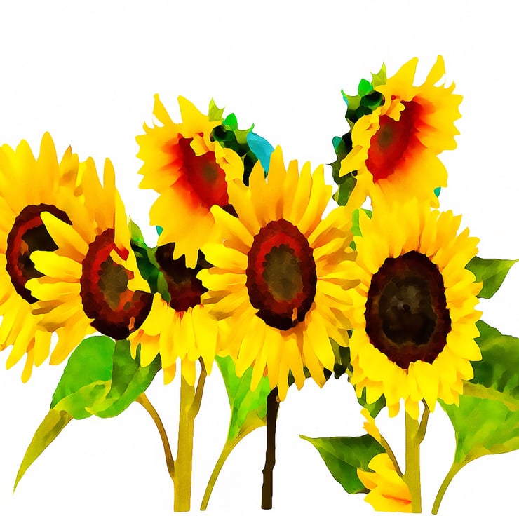 These beautiful Sunflowers are so very vibrant, as they are just flowing about. I have also used a special Watercolour App for effect.