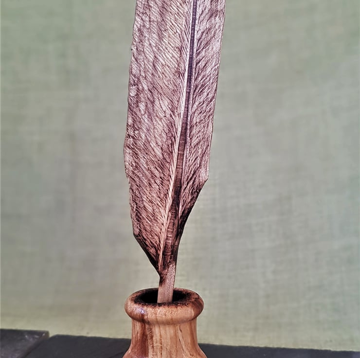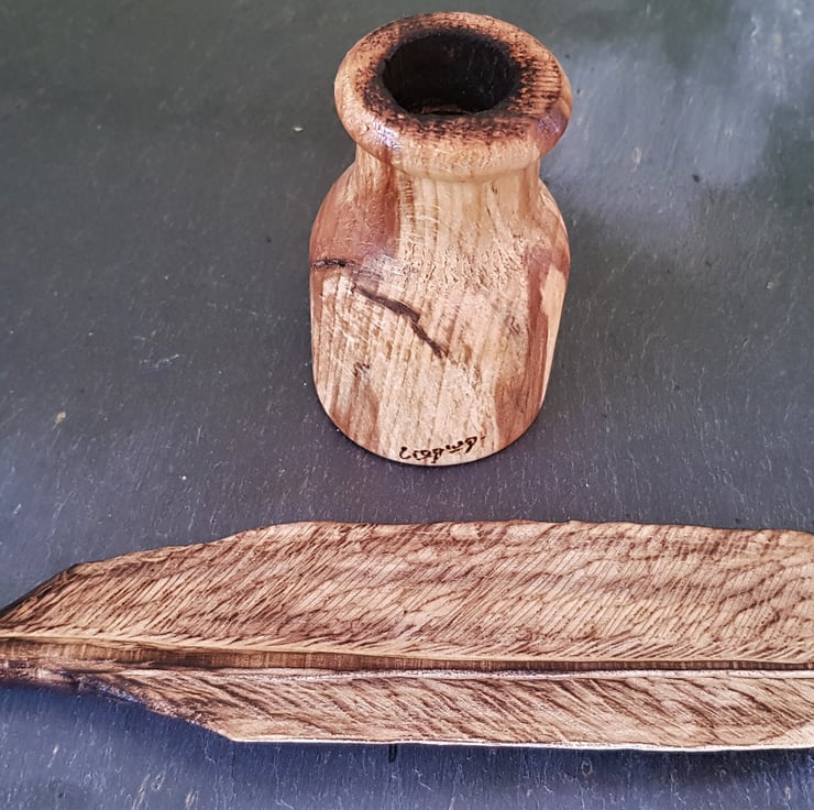 suggested adding a lathe turned pot to create this Inkpot and quill piece!