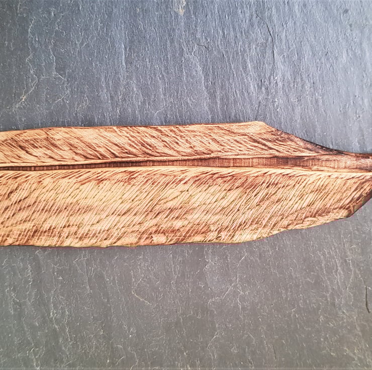 I had the idea of making a single feather from the birds I carve. My wife,Victoria