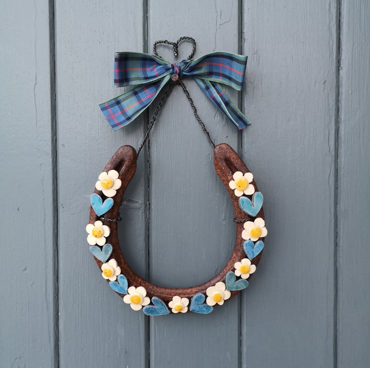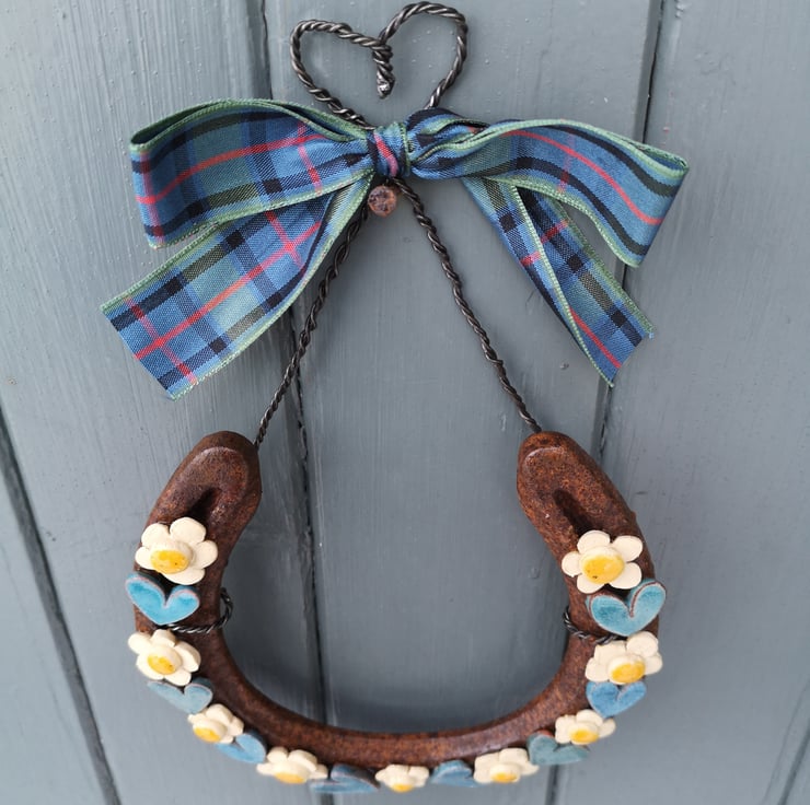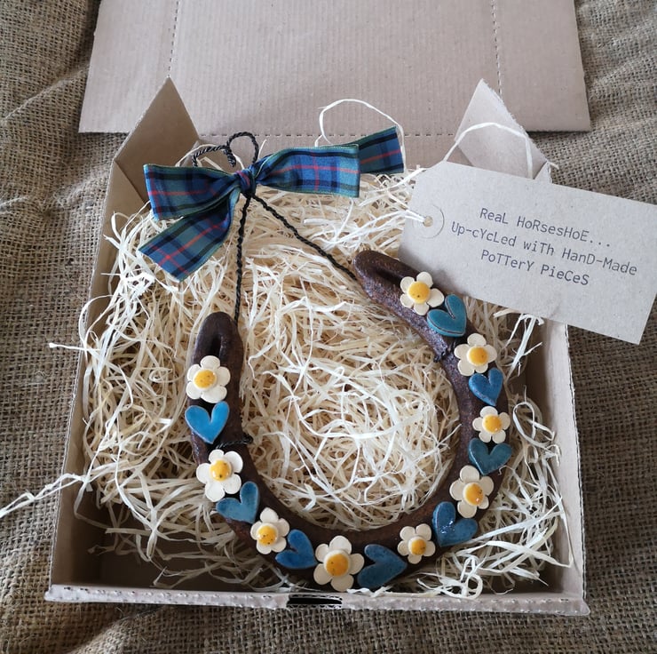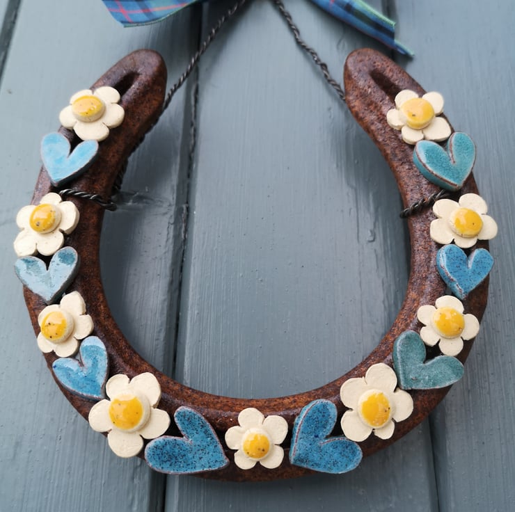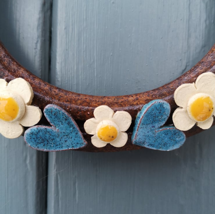 Every shoe is lovingly recycled into an individual,rustic wedding or housewarming gift using handmade pottery hearts and flowers.
