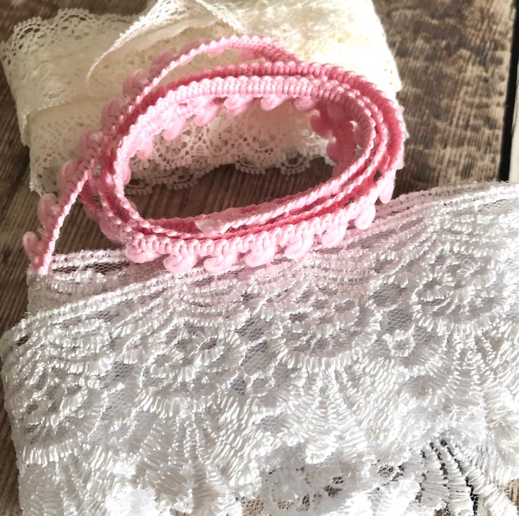 7 x tags .. one has a hand crocheted string and the other tags have white bulb pins
