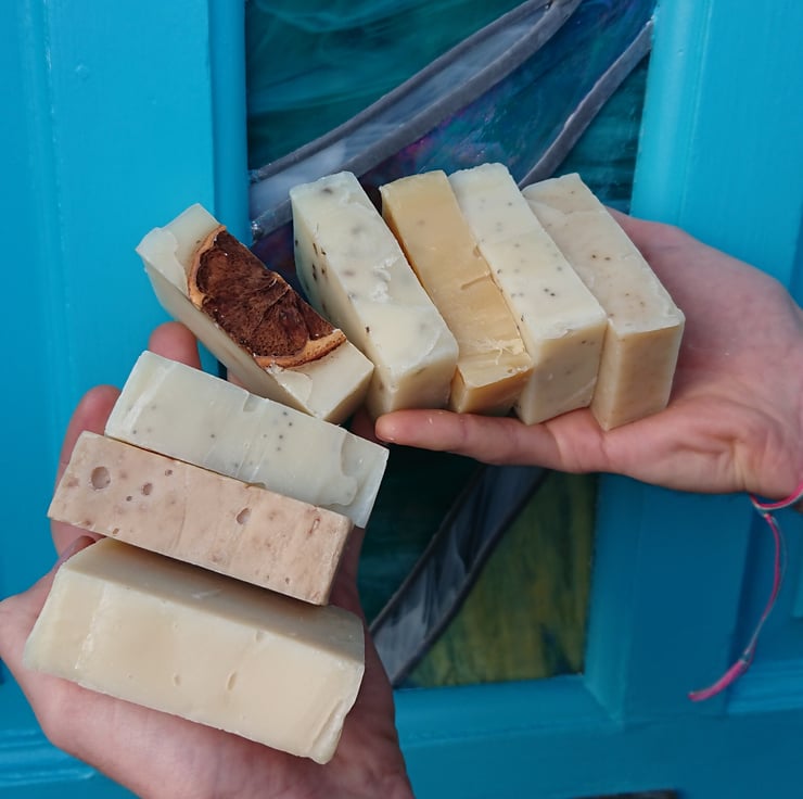 The soaps are vegan (except the Honey and Oatmeal), plastic free, wrapped in tracing paper, 100% recyclable, so zero waste.