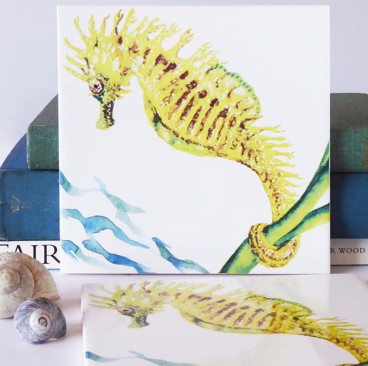This tile is inspired by the astonishing Spiny Seahorse which is found in British waters and is part of my 'Animalia' design tile range