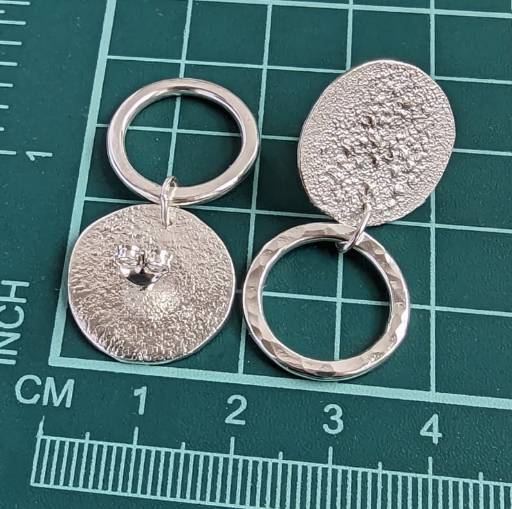 With 16 mm diameter Hoops, hammered creating a dimple effect made from solid 2 mm wire