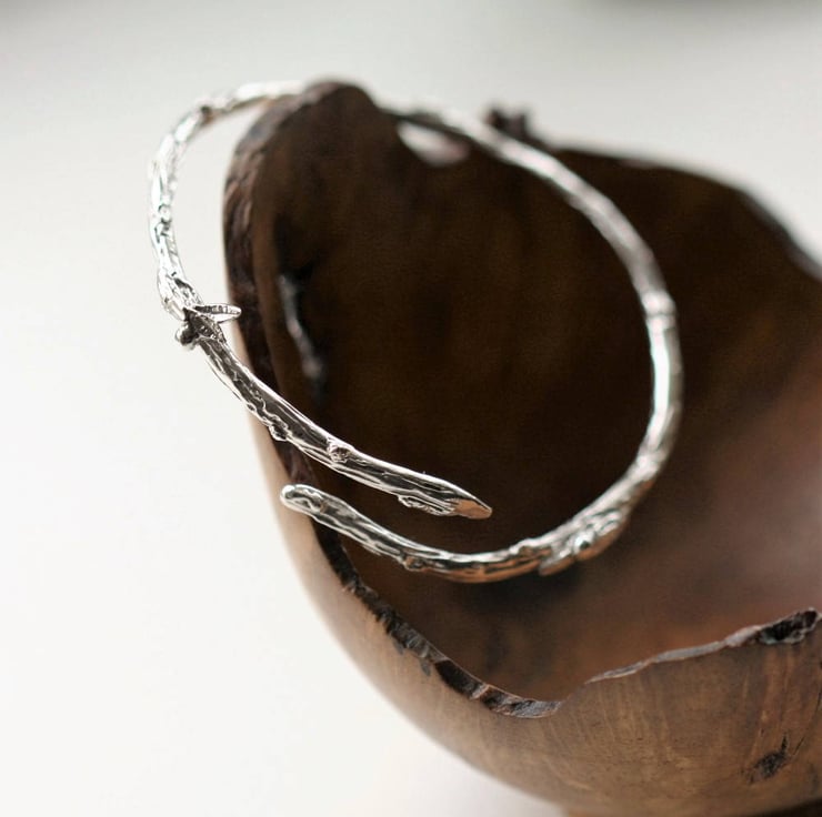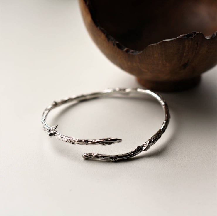 Handmade from thick sterling silver and inspired by nature this beautiful elegant bangle is a must for womens jewellery collection or a nature lover.