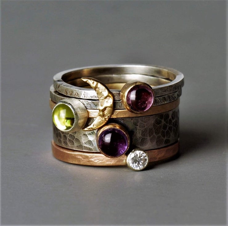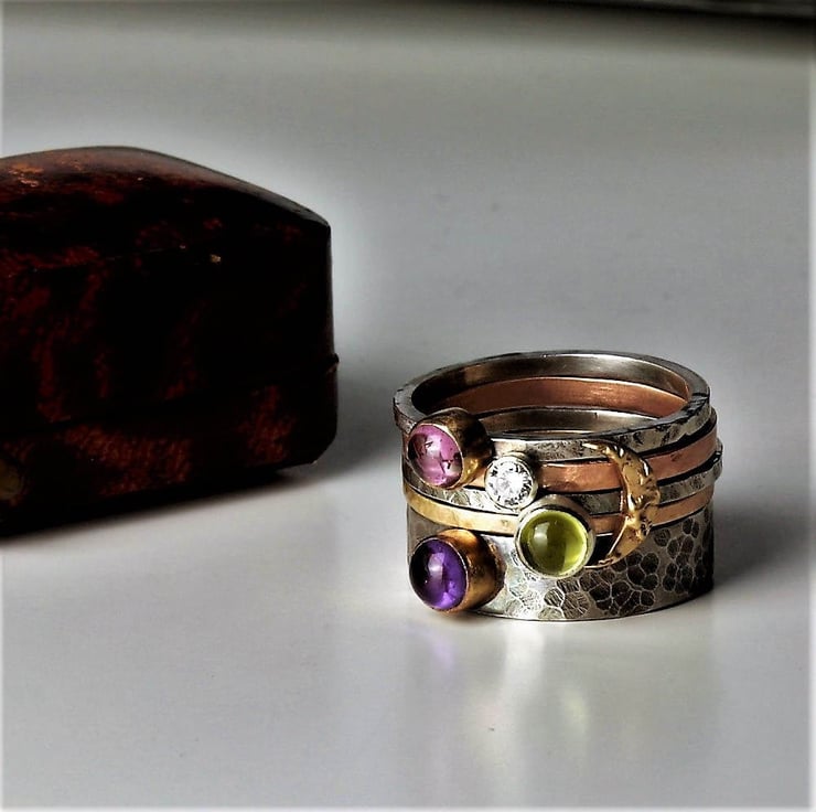 This is the most beautiful-est rustic gemstone stacking ring you will ever see, the ring stack includes five separate rings to wear alone or to stack together.