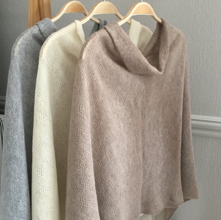 Soft fine merino wool Summer Capelet / Poncho is a new addition to the collection, perfect for any season, Ideal wedding wrap. They can be worn in multiple ways and have a beautiful honeycomb texture. Flattering design, draped neckline.