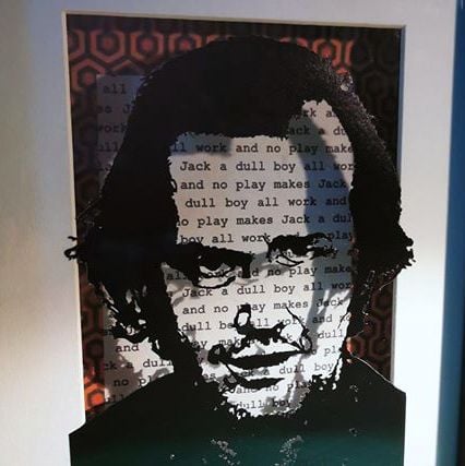 Papercut portrait of Jack Torrance from Stephen King's novel The Shining made famous in the classic film adaptation starring Jack Nicholson.