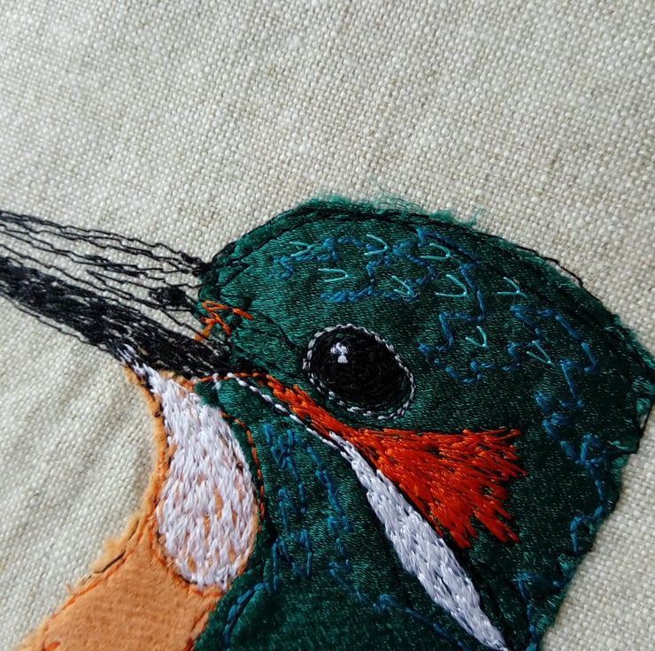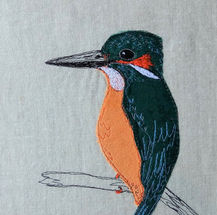 I love watching the beautiful flash of colour as a kingfisher dives, no matter how often I see it it always seems exciting. I also I love combining different materials and techniques to create my textile wildlife portraits.