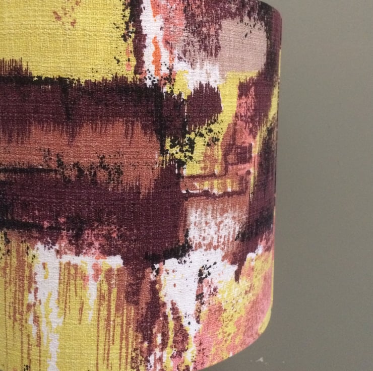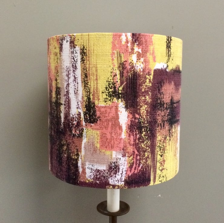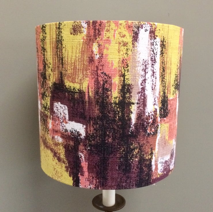 Abstract Chocolate Yellow Lime 50s 60s Barkcloth Vintage fabric Lampshade